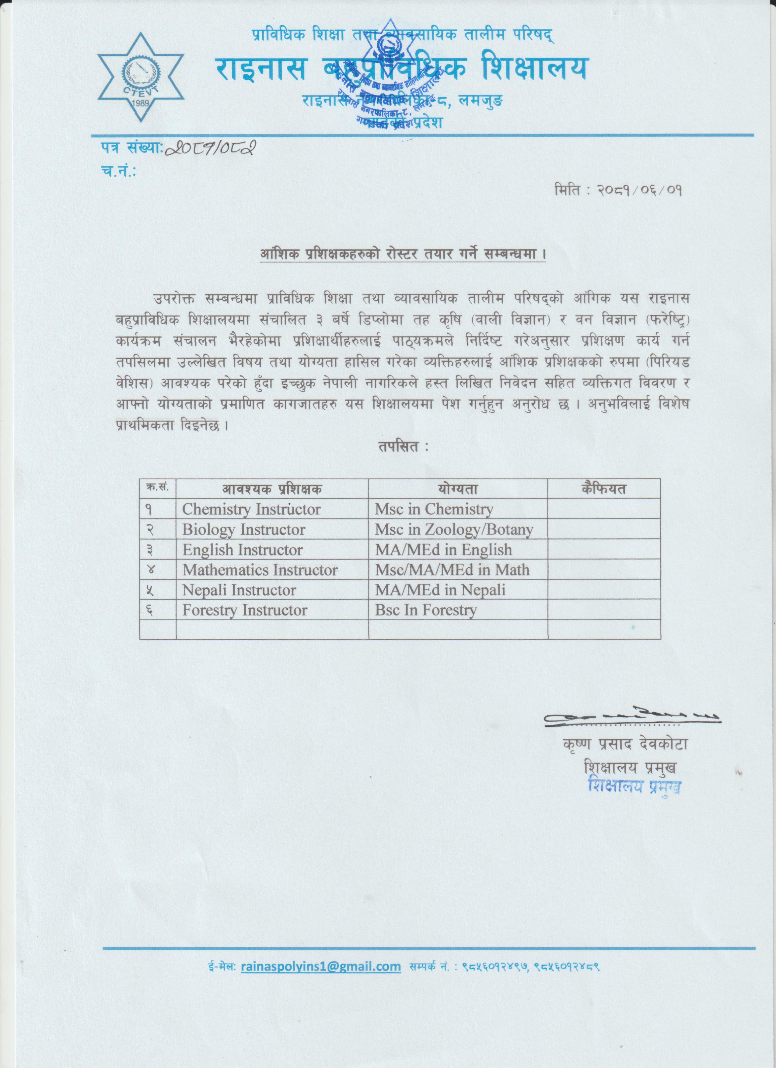 Opportunity for Part-time Instructors